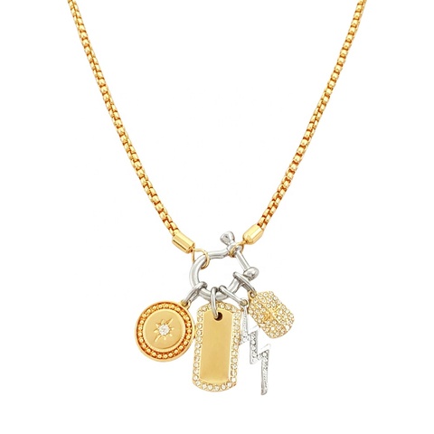 Ciondolo con moschettone aperto personalizzato placcato in oro con catena a maglie di cristallo, collana con strass alla moda per donne in lega principale